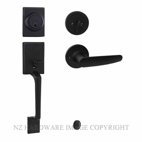 EZSET CAPRI-HAWTHORN GRIP HANDLE SET WITH KEY & TURN DEADBOLT (MATT BLACK)