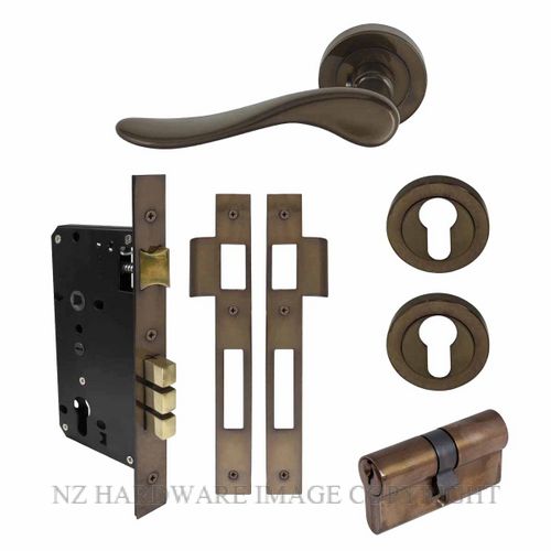 WINDSOR 8198 AB HAVEN 52MM ENTRANCE LOCKSET KEY-KEY ROUND ROSE ANTIQUE BRONZE