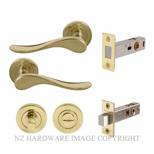 Set Privacy Latch Kitset (Bathroom) Round Rose Handles Polished Brass 52mm 57mm 32mm-50mm Lead Time 14 days Non Returnable Item Lead Time 14 days Non Returnable Item