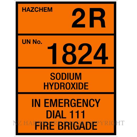 MARKIT GRAPHICS PVCI991 HAZCHEM UN1824 S 340X450MM BLACK ON ORANGE