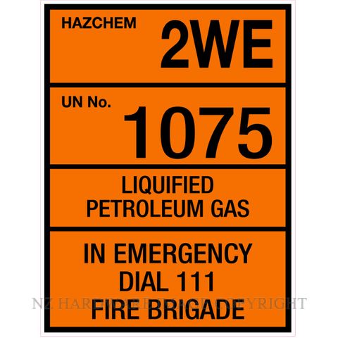 MARKIT GRAPHICS PVCI993 HAZCHEM LPG 1075 S 340X450MM BLACK/ORANGE