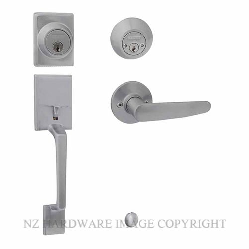 EZSET CAPRI-CAMBRIDGE GRIP HANDLE SET WITH DOUBLE KEY DEADBOLT (SATIN CHROME)