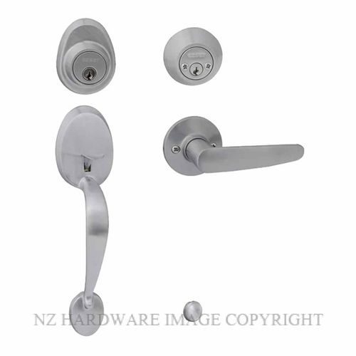 EZSET MAYFAIR-HAWTHORN GRIP HANDLE SET WITH DOUBLE KEY DEADBOLT (SATIN CHROME)