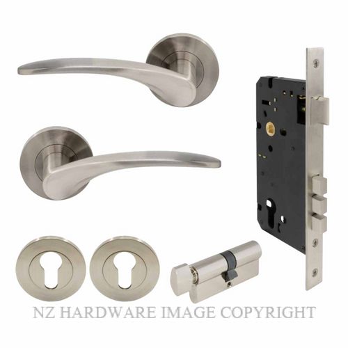 Set Euro Key & Turn Lock Kitset Round Rose Handles Euro 85mm Centres Brushed Nickel 57mm 60mm 32mm-50mm Lead Time 1-2 days 20 Percent Surcharge Lead Time 1-2 days 20 Percent Surcharge